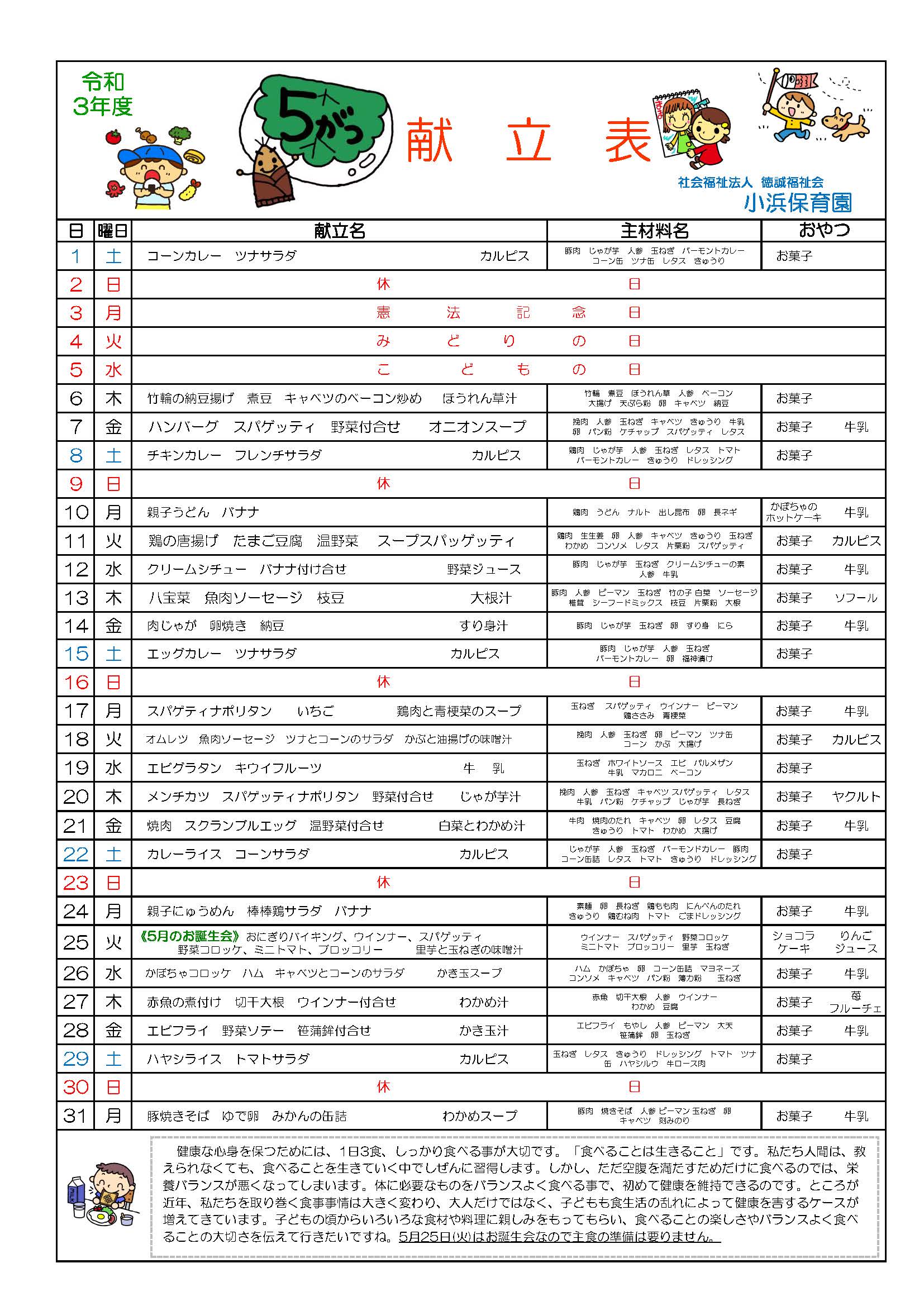 園だより・献立表